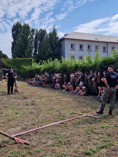 Denný detský tábor po vojensky V termínoch 14.-18.7. a 21.-25.7. 2025 sa po niekoľký ročník 71. prápor podieľal na príprave a priebehu denného detského tábora pre deti profesionálnych vojakov, organizovaného posádkovým klubom v Trenčíne. Na deti počas obidvoch turnusov čakal bohatý program, ako napríklad prednáška o výrobe medu, ochutnávka medu, výroba sviečok a medovníkov, tajné šifry , hlavolamy, vedomostné otázky, pohybové aktivity, plavba na dračích lodiach, orientačné hry, popoludnie s hasičmi, s vojenskou a štátnou políciou, vystúpenie vojenskej hudby a základné techniky bojového umenia – Aikido. Samozrejmosťou boli aj ukážky ručných zbraní, výzbroje a techniky, zásady pri poskytovaní prvej pomoci, obľúbená prekážková dráha a streľba zo vzduchových zbraní. V neposlednom rade musíme spomenúť aj dynamickú ukážku vojenskej polície a ich štvornohých kolegov, ktorá ma u detí každoročne neskutočný úspech. Počas tohto nabitého a zaujímavého programu boli deťom neustále nápomocní profesionálni vojaci a zamestnanci zo 71.prpv a posádkového klubu v úlohe organizátorov a animátorov. Deti boli opäť veľmi spokojné, s novými vedomosťami, kamarátstvami a príjemne „vybláznené“, o čom svedčali aj prázdne taniere počas obedov. Tešíme sa opäť o rok!