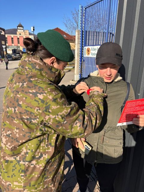 Zároveň príslušníci 54.raketometného oddielu a 103.práporu radiačnej, chemickej a biologickej ochrany rozdávali v meste symbolické červené maky, ktoré sa už tradične spájajú s pamiatkou na padlých a sú celosvetovým znakom úcty k vojnovým veteránom.