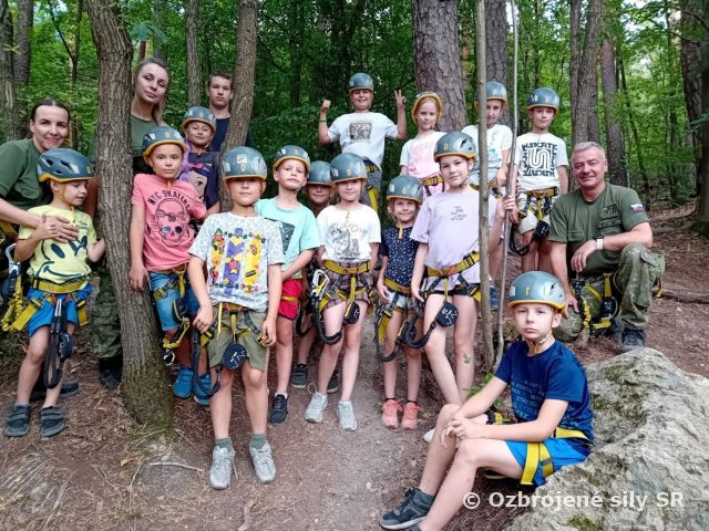 Denný letný tábor pre deti PrV a zamestnancov z 11. brigády Vzdušných síl Nitra. V termíne od 21. do 25. júla pripravili príslušníci 11. brigády Vzdušných síl Nitra denný letný tábor pre deti profesionálnych vojakov a zamestnancov. Tábora sa zúčastnilo 23 detí, ktoré počas piatich dní zažili množstvo nezabudnuteľných zážitkov, zábavy i športových aktivít. Program bol starostlivo pripravený tak, aby deťom ponúkol kombináciu pohybu, poznávania a oddychu. Hneď v úvode navštívili Zveropark v Žarnovici, kde mali možnosť zblízka spoznať rôzne druhy zvierat a naučiť sa niečo nové o ich živote. V ďalších dňoch si deti vyskúšali streľbu zo vzduchovky, zdolávali lezeckú stenu, zažili adrenalín v Jump House Aréne a prešli si aj zaistenú cestu – feratu. Nezabudnuteľnou bodkou na záver bola spoločná opekačka, počas ktorej si deti pochutnali na dobrotách pri ohni a zaspomínali si na celý týždeň plný zážitkov. Svojou návštevou ich poctil aj veliteľ 11. brigády, ktorý sa s deťmi osobne rozlúčil a každému z nich odovzdal pamätný list ako pamiatku na tábor. Tábor bol nielen príležitosťou na nové priateľstvá, ale aj dôkazom, že 11. brigáda Vzdušných síl Nitra myslí aj na najmladších členov rodín svojich PrV a zamestnancov. Už teraz sa mnohí z nich tešia na ďalší ročník.