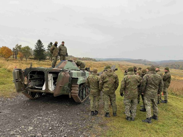 „Kurz strelcov z lafetovaných zbraní (KPVT/PKT)“ V dňoch 21. – 22. októbra 2025 sa na strelnici bojových vozidiel v Centre výcviku Lešť ( CV Lešť ) uskutočnila záverečná fáza „Kurzu strelcov KPVT/PKT“ príslušníkov 3. protilietadlovej raketovej skupiny 11. brigády Vzdušných síl Nitra ( 11. bVzS NR ). Kurz pozostával z dvoch fáz. Teoretická príprava, ktorá bola realizovaná v priestoroch 11. bVzS NR týždeň pred praktickou časťou pod vedením inštruktorov 7. výcvikového pluku Martin. V danom týždni boli overené taktické postupy, strelecké predpisy a bezpečnostné protokoly u určených PrV. Druhá fáza - praktická časť sa uskutočnila v CV Lešť. Hlavnou náplňou dvojdňovej praktickej časti kurzu bola obnova a získanie streleckej spôsobilosti z lafetovaných zbraní na obrnených transportéroch (OT-90): ľahkého guľometu 7,62 mm PKT a ťažkého guľometu 14,5 mm KPVT. Po nácviku postupov nasledovali ostré streľby, pri ktorých účastníci prešli všetkými úkonmi spojenými s obsluhou a nasadením lafetovaných zbraní. Po ukončení kurzu boli vykonané cvičenia strelieb z vozidiel vybavených lafetovanými zbraňami PrV 3. protilietadlovej raketovej skupiny. Cvičenia strelieb sa zúčastnilo celkovo 27 strelcov. Celkové hodnotenie jednotky bolo „VÝBORNE“. Najlepším strelcom s najvyšším počtom nastrieľaných bodov sa stal des. Marián BLAŠKO a najlepším frekventantom kurzu sa stala vojačka 2.st Nikol VAŇOVÁ. Cvičenie potvrdilo profesionálnu pripravenosť strelcov a ich schopnosť efektívne ovládať techniku streľby v podmienkach približujúcich sa reálnej bojovej situácii.